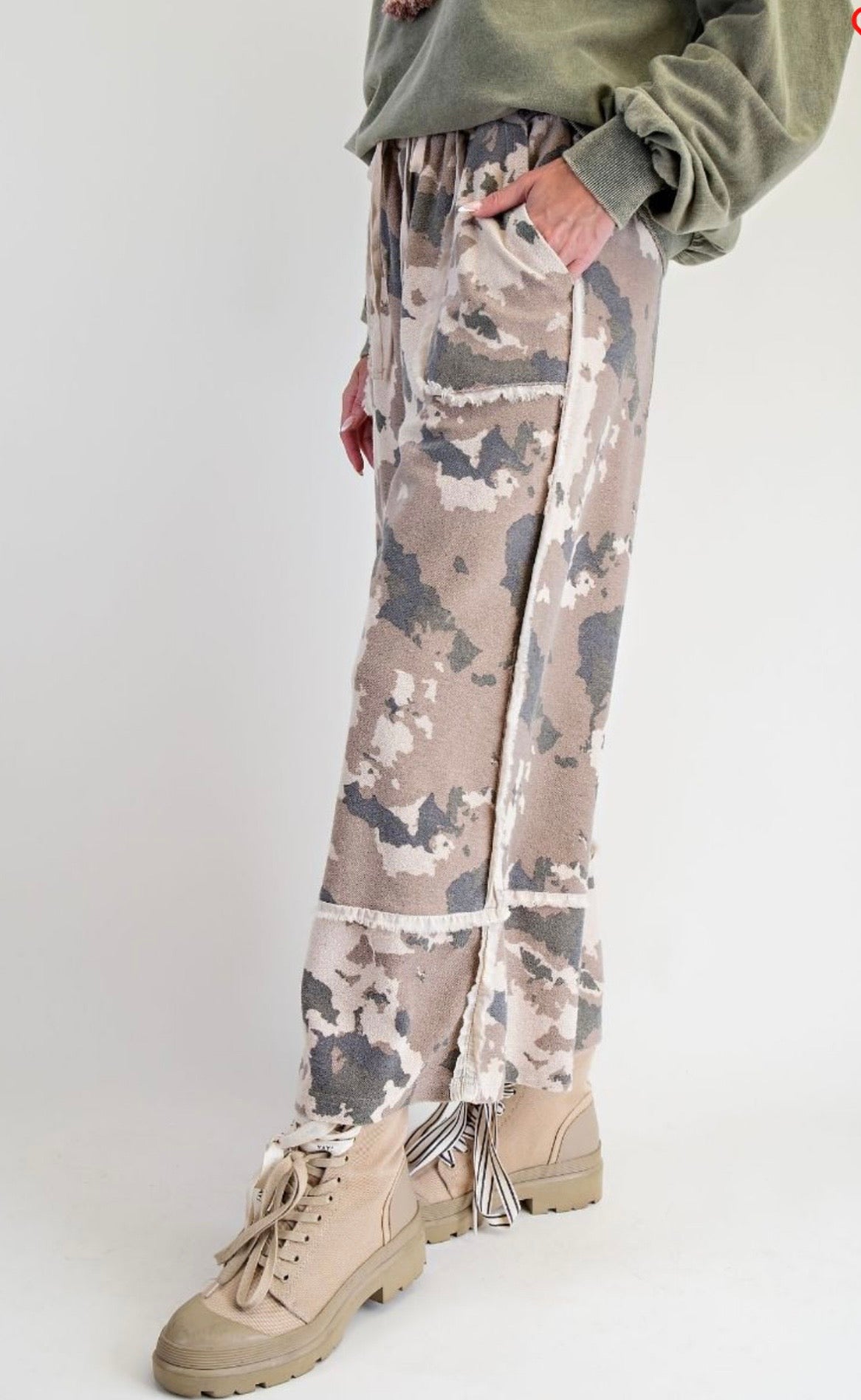 CAMOUFLAGE PRINT WASHED TERRY PANTS