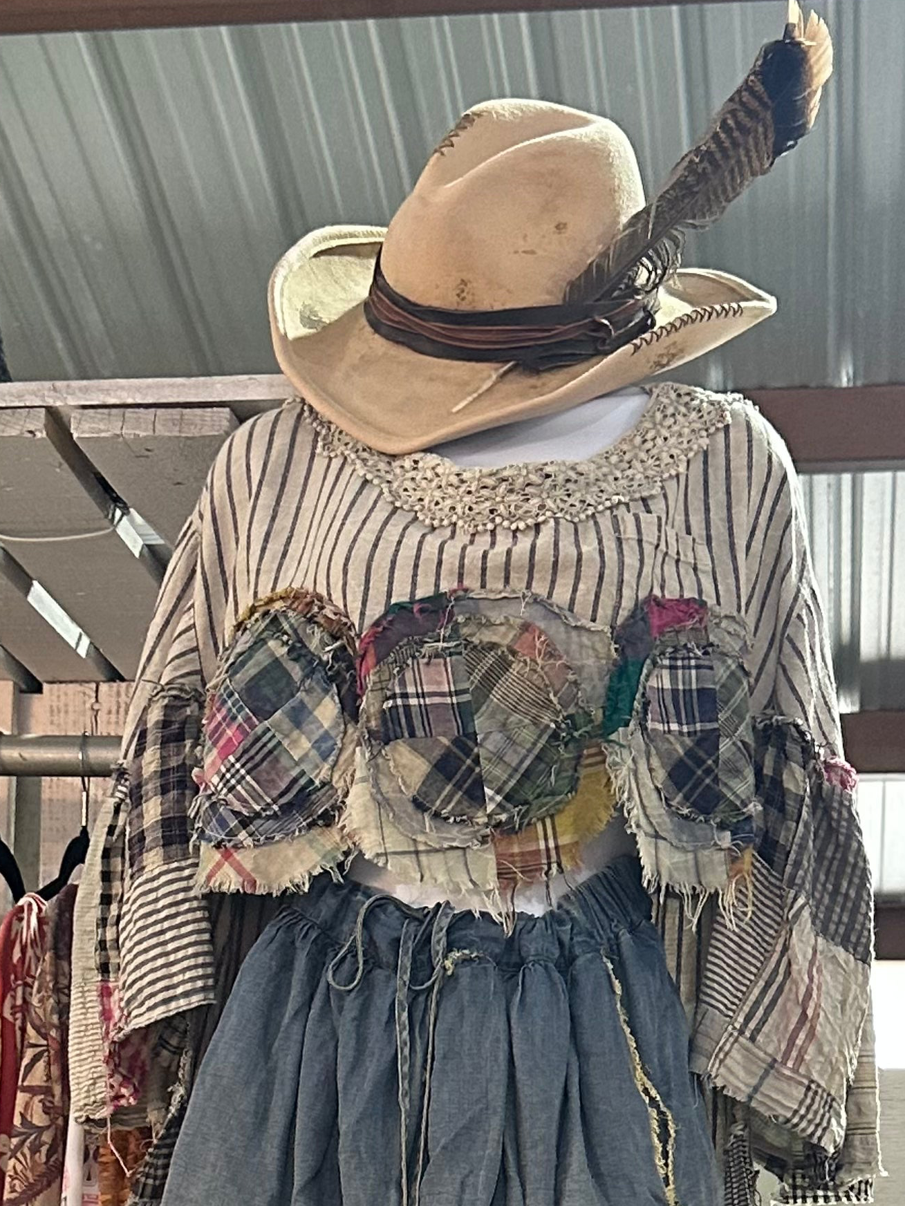 - Mixed stripe, plaid, and patchwork design