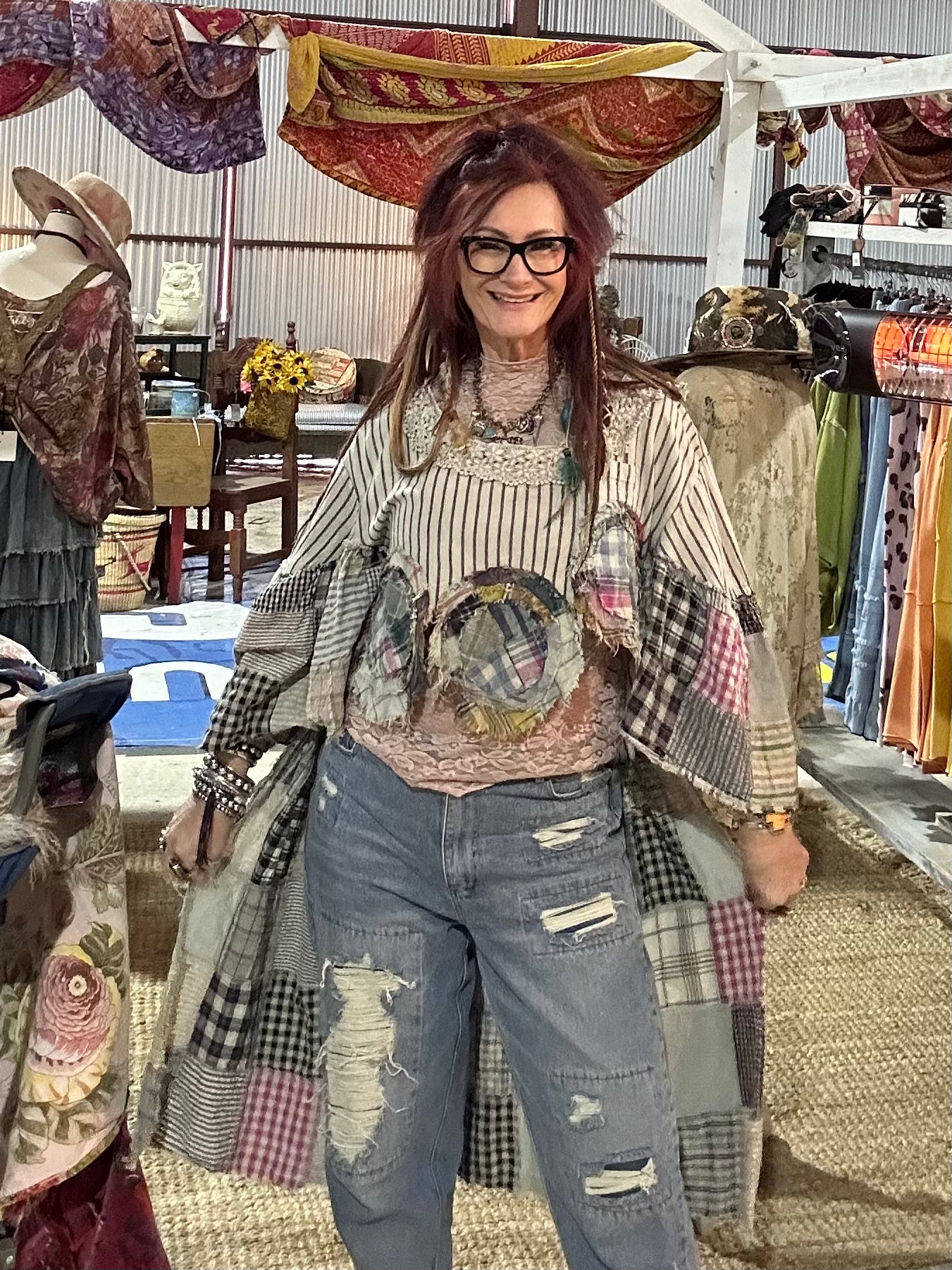 A true statement piece with that perfectly imperfect boho soul. This patchwork hi-low tunic features a soft striped bodice, mixed plaid and gingham patchwork detailing, and raw frayed accents that give it that lived-in, artsy Jaded Gypsy feel. The relaxed fit makes it easy to wear, while the hi-low shape gives beautiful movement and extra coverage in the back.